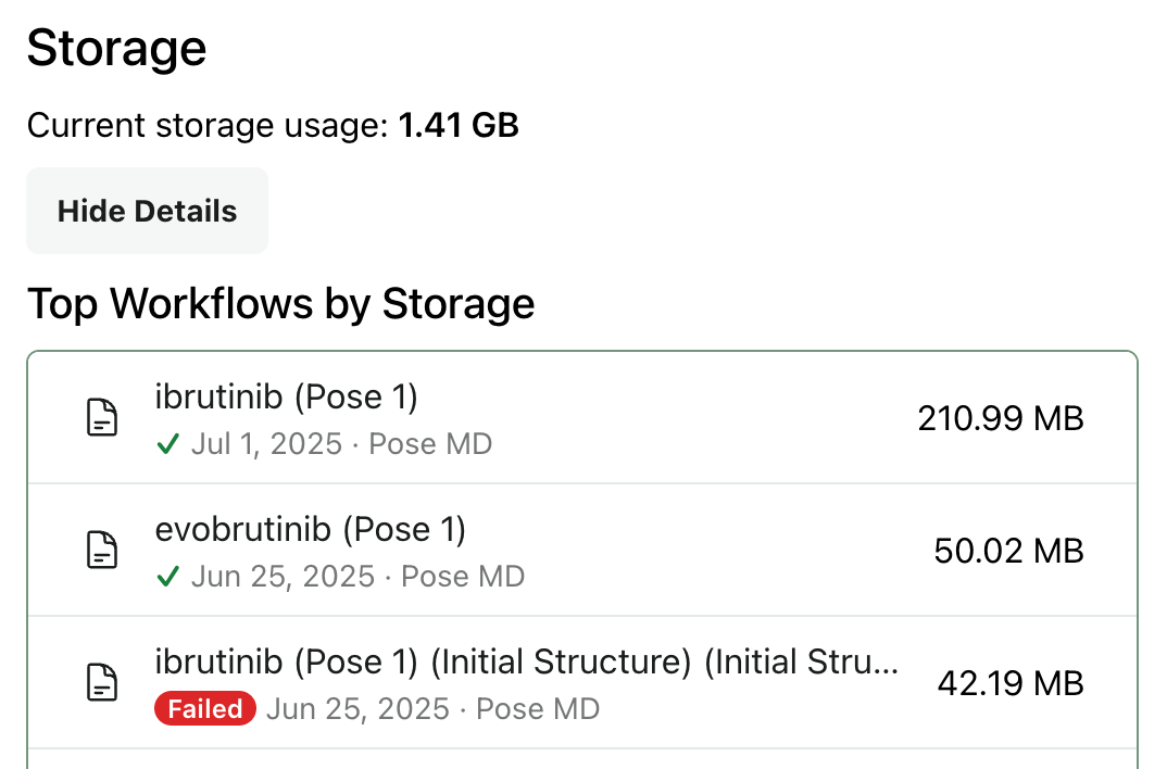We’ve also added item-level storage insights to Rowan’s billing page, so you can quickly see which workflows and proteins are driving your storage usage.